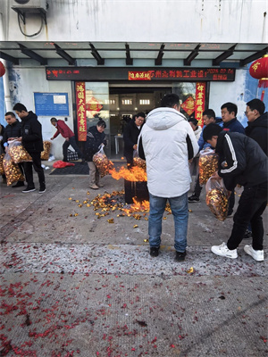 與此同時(shi),鞭炮聲也噼里啪啦地響(xiang)(xiang)了(le)起來,清脆的聲響(xiang)(xiang)回蕩在(zai)整個廠區,寓意著(zhu)杰凱集團在(zai)新的一(yi)年里紅(hong)紅(hong)火火、熱熱鬧鬧。