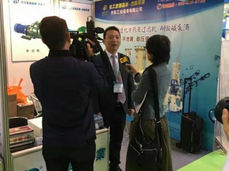 2016年第(di)二屆中國環博會(hui)-廣州展(zhan)(zhan)是集中展(zhan)(zhan)示(shi)全球 水、空氣、土壤、廢棄物等環境問題解決方案(an)的(de)專業(ye)展(zhan)(zhan)會(hui)。作(zuo)為化(hua)工環保設(she)備(bei)的(de)專業(ye)生產制(zhi)造(zao)商【杰(jie)凱(kai)泵業(ye)】,專注于化(hua)工防腐泵和化(hua)學藥業(ye)過濾機的(de)研發(fa)與生產十余年的(de)杰(jie)凱(kai),秉承(cheng)“以(yi)質量求生存,以(yi)技術求發(fa)展(zhan)(zhan)”和產品經(jing)營理念和“信譽第(di)一,客戶至上”的(de)服(fu)務標準(zhun),在中國環博會(hui)-廣州展(zhan)(zhan)會(hui)第(di)一天,杰(jie)凱(kai)泵業(ye)【NO.A108】展(zhan)(zhan)位吸引了廣東新聞頻道(dao),中國環保在線的(de)關(guan)注,并得到了兩大媒體的(de)現場專訪。