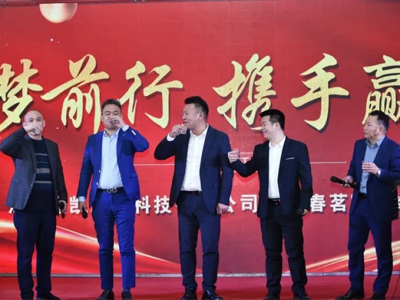禹(yu)總(zong)、易總(zong)、白總(zong)、劉總(zong)、田總(zong)五位領導共同為(wei)春茗晚宴(yan)祝酒道賀(he),期盼杰凱集團在新的一年(nian)里能繼奏凱歌、續寫華章!