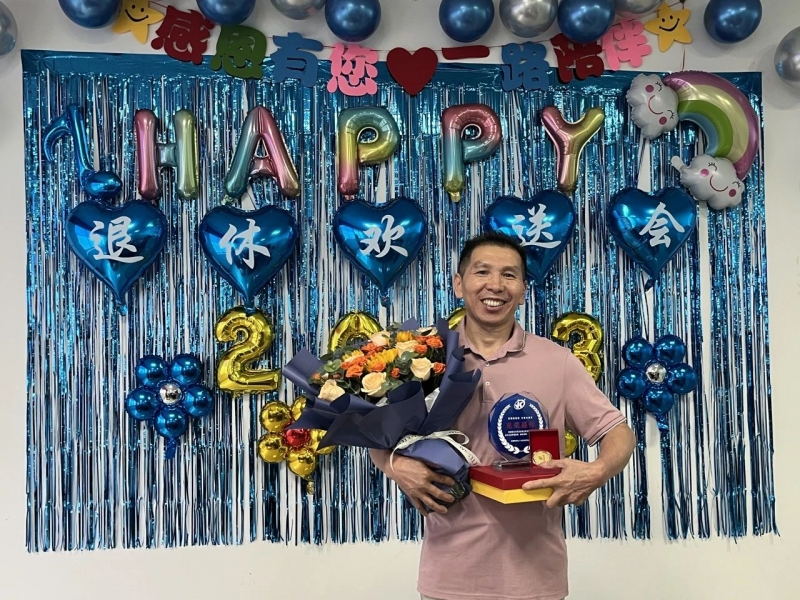 退(tui)休(xiu)儀(yi)式上,劉總助(zhu)為曾師(shi)傅獻上“忠誠(cheng)員工金牌”、“退(tui)休(xiu)紀念(nian)獎(jiang)杯”以及鮮花。在(zai)全體員工的祝福下,曾師(shi)傅正式光榮退(tui)休(xiu)。